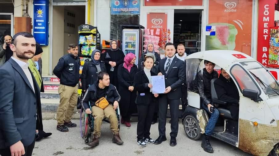 21 yaşındaki Çelik başvuru evraklarını AK Parti Sapanca İlçe Başkanı Şafak Başoğlu'na teslim etti.
