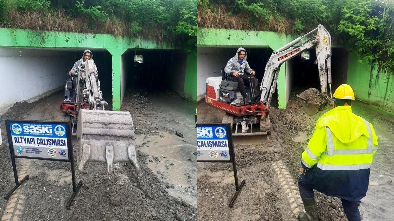Belediyeden yapılan açıklamada, Sapanca ilçesinde etkisini gösteren sağanağın ardından çamurla kaplanan alt geçit ve yollarda SASKİ ekiplerince çalışma başlatıldığı belirtildi.