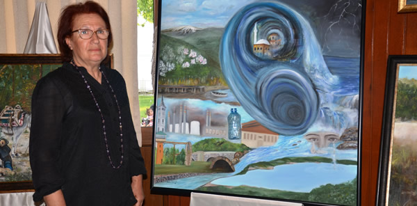 Sapanca Kent Konseyi Başkan Yardımcısı Nazire Öztunalı, Sapanca Gölü’nde yaşanan çekilmeyi konu eden protest tablo ile SAMEK sergisinde ilgi odağı oldu.