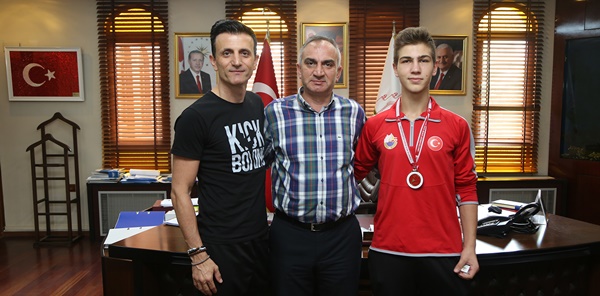 Kick Boks'ta Türkiye Şampiyonu olan Sapanca Belediyesi Minder ve Ring Sporları Merkezi sporcusu Muhammet Emir Uysal, Belediye Başkanı Doç. Dr. Aydın Yılmazer'i makamında ziyaret etti.
