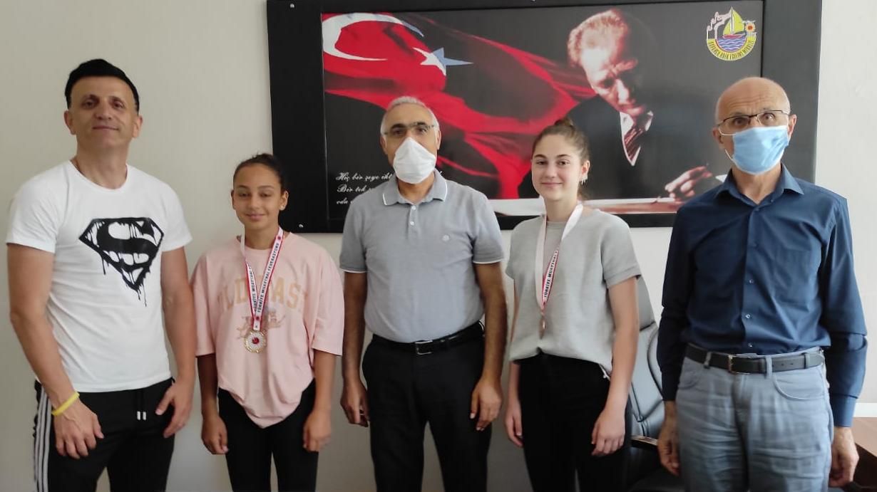 Başarılı sporcular Antrenörleri Serkan Yılmazer eşliğinde Halk Eğitim Merkezi Müdürü Selahattin Çağır'ı ziyaret etti.