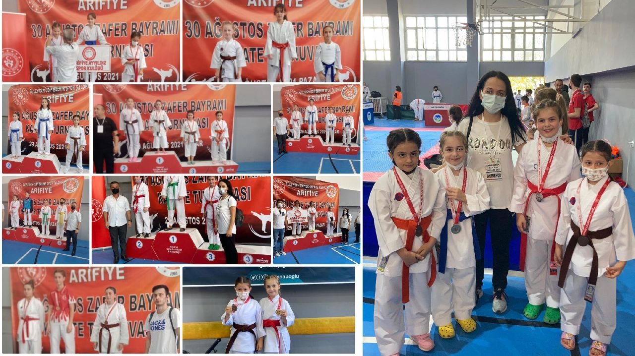 30 Ağustos Zafer Bayramı sebebiyle Arifiye Spor Salonunda yapılan Karate Turnuvasına Antrenörler Elif Çaloğlu ve Tuğçe Berber eşliğinde katılan Sapanca Ayyıldız GSK sporcuları derece yaparak 13 madalya kazandı.