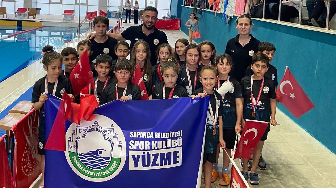 Sapanca Belediye Spor Kulübü bünyesindeki yüzme branşı sporcuları, 19 Mayıs Gençlik ve Spor Bayramı kutlama programları çerçevesinde Sakarya'da düzenlenen müsabakadan madalyaları toplayarak döndü.