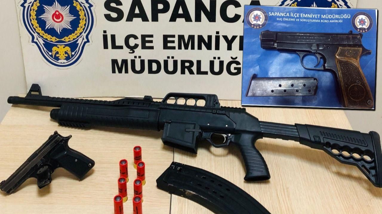 Sapanca'da polis ekipleri 2 adet ruhsatsız tabanca ile yarı otomatik tüfek ele geçirdi.