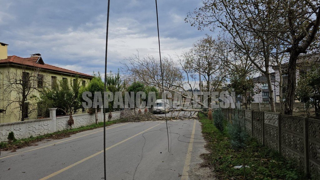 Sapanca ilçesinde şiddetli rüzgar nedeniyle caddeye devrilen ağaç, ulaşımı aksattı.