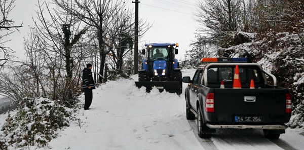 SAPANCA’DA KARLA MÜCADELE: Sapanca Belediyesi, ilçenin üst kesimlerinde gerçekleşen kar yağışı sonrası sorun yaşanmaması için çalışmalara erken başladı.