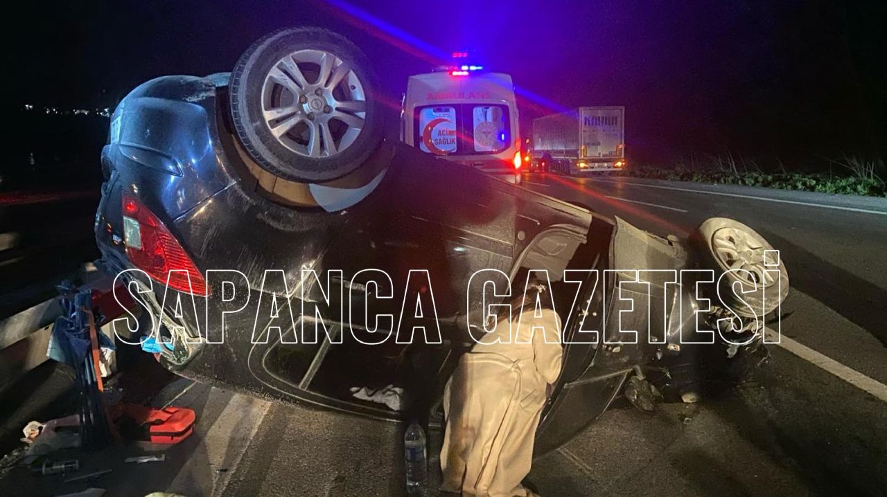 Sapanca ilçesinde meydana gelen trafik kazasında otomobil devrildi.