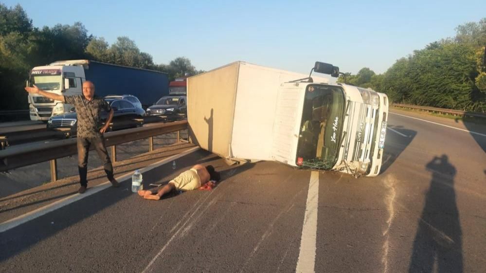 Anadolu Otoyolu Sapanca geçişinde kontrolden çıkan kamyonet yan yattı. Meydana gelen kazada sürücü yaralanırken otoyolda kilometrelerce trafik oluştu.