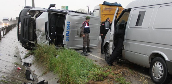İzmit’ten Sakarya istikametine gelen para nakil aracı yolun kaygan olması nedeniyle devrildi. Takla atan araçta ölen ya da yaralanan olmadı.