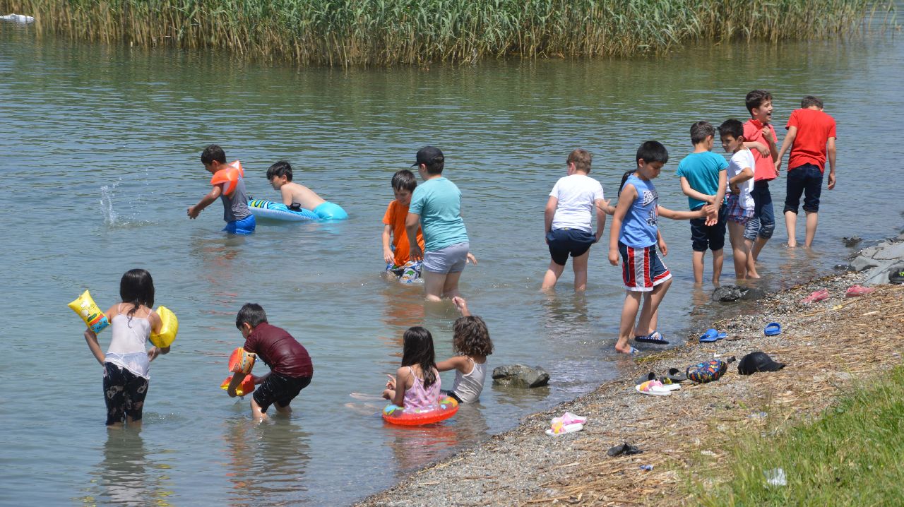SAPANCA'DA SICAK HAVANIN TADINI ÇOCUKLAR ÇIKARDI