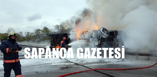 Anadolu Otoyolu'nun Sapanca kesiminde devrilen sunta yüklü tırın yanması nedeniyle ulaşımda aksama meydana geldi.