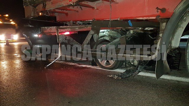 Sapanca ilçesi Tır'a arkadan çarpan otomobildeki karı koca yaralandı.