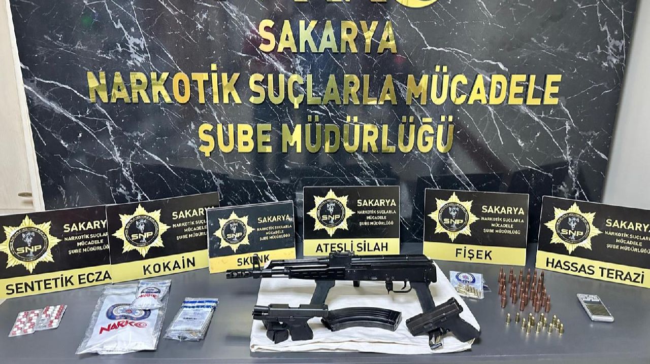 Sapanca Cumhuriyet Başsavcılığı koordinesinde, uyuşturucu madde ticareti ve kullanımının engellenmesine yönelik yapılan çalışmalarda, İstanbul'dan Sapanca ilçesine uyuşturucu madde getirecekleri tespit edilen 5 şüpheli ile şüphelilerin Sapanca'da irtibatlı olduğu 1 kişi, ekipler tarafından yakalandı. Şüphelilerin üstlerinde ve 2 araçta yapılan aramalarda, 1 adet AK47 kalaşnikof tüfek, 2 adet ruhsatsız tabanca, 50 adet silahlara ait fişek, 147 gram kokain, 25 adet sentetik ecza, 1.25 gram skunk, 1 adet hassas terazi ele geçirildi.