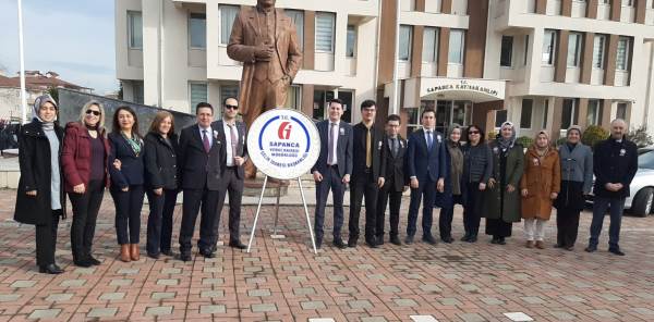 Hükümet Konağı önünde düzenlenen törende Atatürk Anıtı'na çelenk sunan Sapanca Vergi Dairesi Müdürü Abdullah Cesar ve kurum çalışanları saygı duruşunda bulundu, İstiklal Marşı okudu.