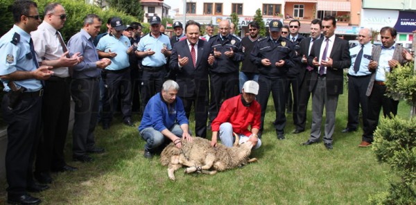 Sapanca Polis Merkezi Amirliği bahçesinde gerçekleşen kurban kesimine Sapanca Kaymakamı Osman Sarı, Cumhuriyet Savcısı Mehmet Beyazıt Şahin, Emniyet Müdürü Erdem Mali, Müdür Yardımcısı İbrahim Bedir, Emniyet Amiri Aydın Ertürk, Komiserler Fatih Karakuş ve Alpaslan Gök, Sapanca Müftüsü Orhan Örnek ile polis memurları katıldı.
