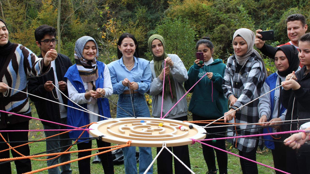 Gençler "Sakarya'da Sonbahar" teması üzerine planlan doğa yürüyüşü parkurunu tamamladıktan sonra matrak, labirent, halat çekme ve voleybol oyunlarını oynadı.