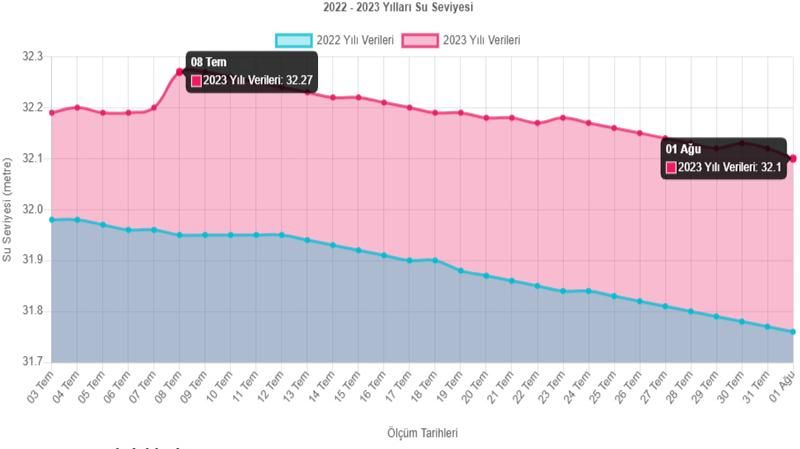 Göldeki su seviyesi haberin yayına hazırlandığı saatlerde 32.10 metreye kadar geriledi.