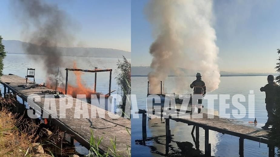 Sapanca Gölü'nde yanan tekne itfaiye ekiplerince söndürüldü.