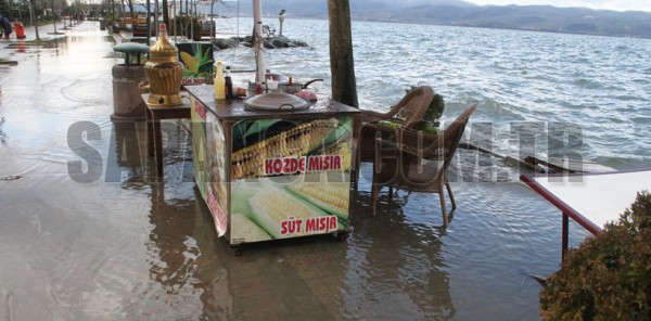 SAPANCA GÖLÜ SAHİLİNDEKİ YÜRÜYÜŞ YOLUNUN BİR KISMI SULAR ALTINDA KALDI