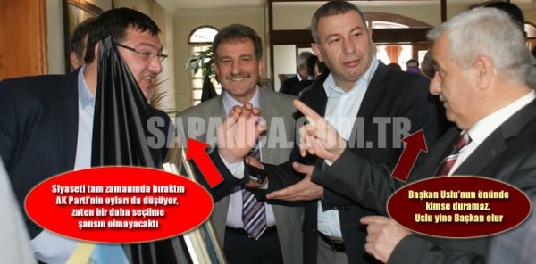 Sapanca Belediye Başkan Yardımcısı Hayati Arıcı'nın bir süre önce siyaseti bırakacağını açıkladığını hatırlatan MHP'li Mercan "Tam zamanında bıraktın AK Parti'nin oyları da düşüyor, zaten bir daha seçilme şansın olmayacaktı" dedi. Mercan'ın sözlerine Arıcı'nın cevabı ise "Başkan Uslu'nun önünde kimse duramaz Uslu yine Başkan olur" oldu. Bu konuşma muhabbeti dinleyen misafirler arasında esprili anlar yaşanmasına sebep oldu.