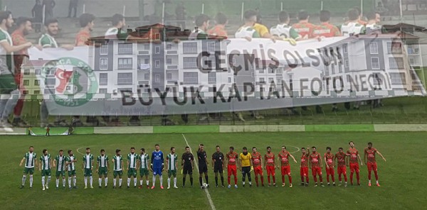 Sapanca Atatürk Stadında oynan karşılaşmada; geçtiğimiz günlerde kalbinden ameliyat olan Sapancaspor'un efsane futbolcularından Necmi Kösemen'i unutmayan futbolcular sahaya "Geçmiş Olsun Büyük Kaptan Foto Necmi" pankartıyla çıktı.