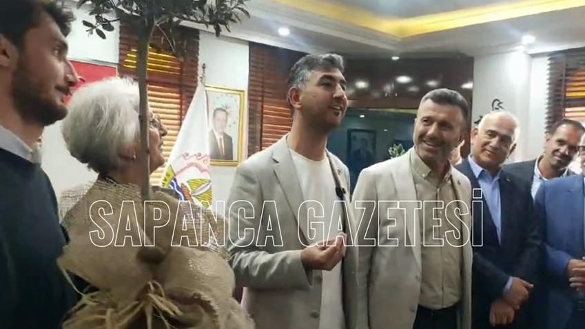 Belediyenin önüne dikilmek üzere 2 adet zeytin agacınıda yanında getiren Sapanca'nın yeni belediye başkanı Nihat Arda Şahin yaptığı konuşmasında, ''Özcan ağabeyimizle hep abi kardeş çerçevesi 5 sene boyunca devam etti. Elinden geldiğince bizim taleplerimize cevap verdi. Şimdi bizler bayrağı onun bıraktığı yerden bir adım öteye taşımanın derdindeyiz. Bundan önce de hizmet veren belediye başkanlarımıza teşekkür ediyoruz. Hayatta olmayanlara ahllahtan rahmet diliyoruz. Vatana millete hayırlı olalım inşallah'' ifadelerini kullandı.