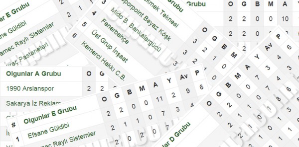Olgunlar kategorisi A grubunda 6 puanla 1990 Arslanspor, B grubunda 7 puanla Balık Ekmek Teknesi, C grubunda 6 puanla Kırkpınar İnşaat, D grubunda 6 puanla BİMspor ve E grubunda 6 puanla Efsane Güldibi liderlik koltuğunda oturuyoruz.