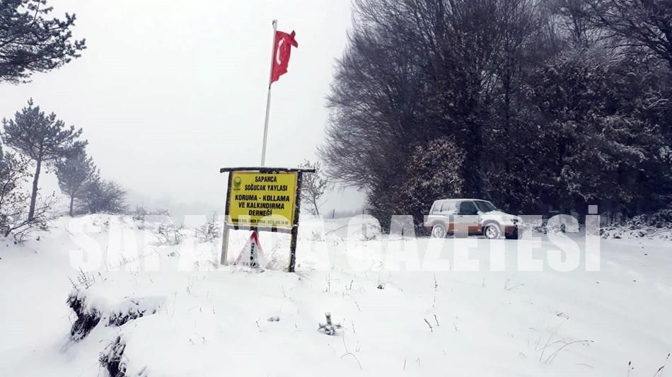 Arazi araçlarıyla yaylaya çıkan Sapanca Soğucak Yaylası Koruma Kollama ve Kalkındırma Derneği (YAYDER) üyeleri mevsimin ilk kar yağışını görüntüledi. Yağış bölgeyi beyaza bürüdü.