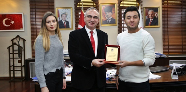 Turizm Topluluğu Başkanı İbrahim Batman ve topluluk üyesi Şeyda Şeybak, Başkan Yılmazer'i makamında ziyaret ederek fakültenin Sapanca'ya getirilmesindeki çabaları ve fakülteye yaptığı katkılardan dolayı teşekkür etti.