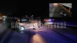 Sapanca ilçesinde otomobil ile motosikletin çarpıştığı kazada 1'i ağır 2 kişi yaralandı. Çarpışmanın ardından motosiklet alev alarak yandı.