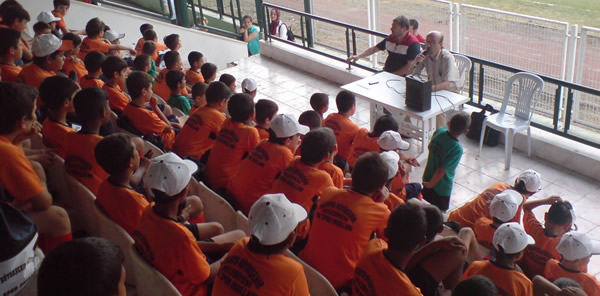 Her ay bir doktoru sporcular ile buluşturacak olan yaz futbol okulunun ilk konuğu olan Aile Hekimi Dr. Erkan Dikmen genç sporcular ile buluşmasında sağlıklı beslenme, kötü alışkanlıklardan uzak durma ve sporcu sağlığı hakkında bilgiler verdi.
