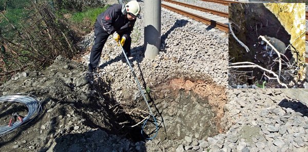 Yüksek Hızlı Tren (YHT) hattında beton direk için açılan çukura köpek düştüğünü gören vatandaşlar durumu itfaiyeye bildirdi. İhbar sonrası olay yerine gelen Sakarya Büyükşehir Belediyesi Sapanca İtfaiye Grup Amirliği ekipleri yaptıkları çalışma sonucu köpeği yaklaşık 3.5 metre derinliğindeki çukurdan kurtardı. Kurtarılan köpek boğazındaki ipin çözülmesinin ardından bölgeden hızla uzaklaştı.