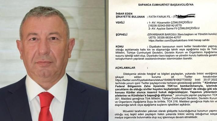 Sapancalı İş İnsanı Fatih Fil, Diyarbakır Barosu ve yöneticileri hakkında suç duyurusunda bulundu.