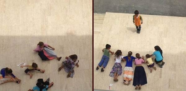 Sapanca'da bulunan bir spor salonun önüne gelen roman çocuklar içeride spor yapan ağabey ve ablalarına bakıp dışarıda aynı hareketleri yapmaya çalıştı. Çevredekilerin meraklı bakışları arasında hareketlerine bir süre daha devam eden roman çocuklar izleyenlerden tam not aldı.