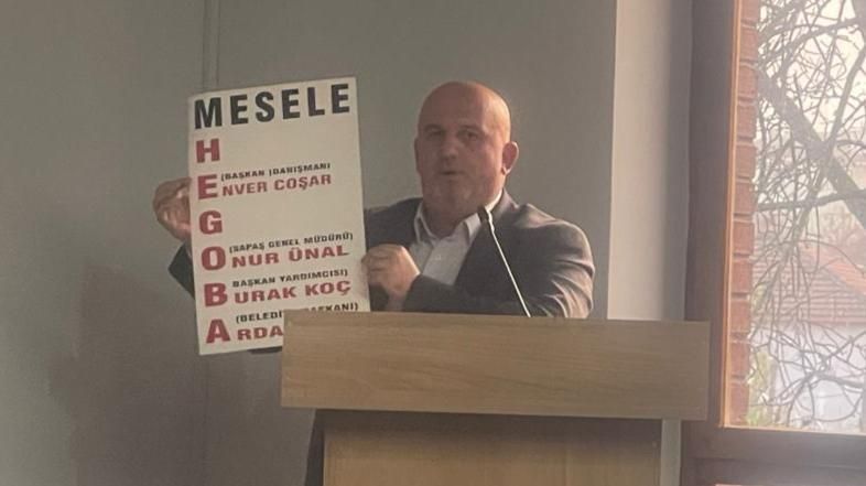 "Sayın başkan kendi ticari işletmeniz olan Hegoba Teknoloji Yatırım ve Turizm Hizmetleri Anonim Şirketi'nin (HEGOBA) altı ortağından siz dahil 4'ü belediyede yönetim kadrolarında görev almış durumda. Bunu kesinlikle etik bulmuyoruz. 46 bin nüfuslu bir ilçede sizlerin dört ortağınız mı sadece bu görevi yapabilecek durumda. Bu görevleri yapacak ilçemizde birçok gencimizin bulunduğunu düşünmekteyiz. Anlıyoruz ki gerçek anlamda 'Mesele Sapanca Değil Mesele HEGOBA'ymış."