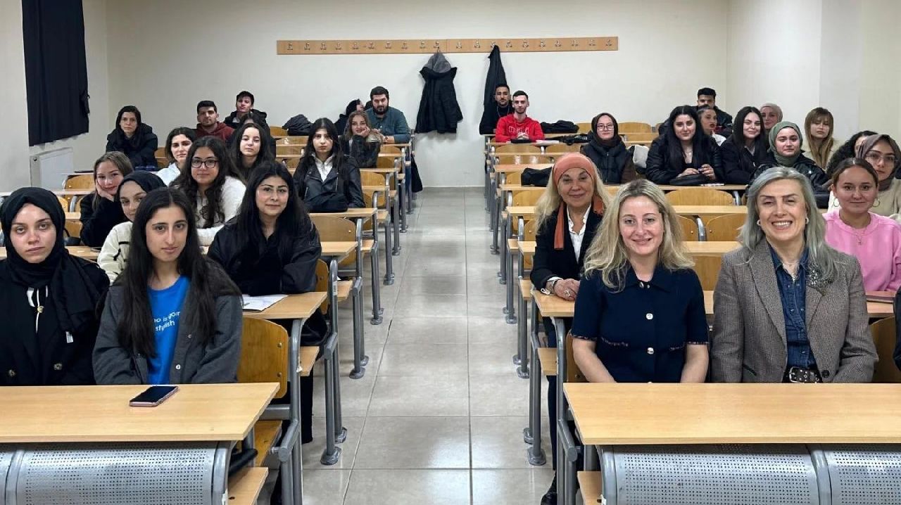 Büro otomasyonu ve muhasebe süreçlerinin önemi ile sektördeki yenilikler hakkında bilgiler veren Kahraman öğrencilere, dijitalleşen muhasebe ile ilgili becerilerini geliştirmeleri tavsiyesinde bulundu.