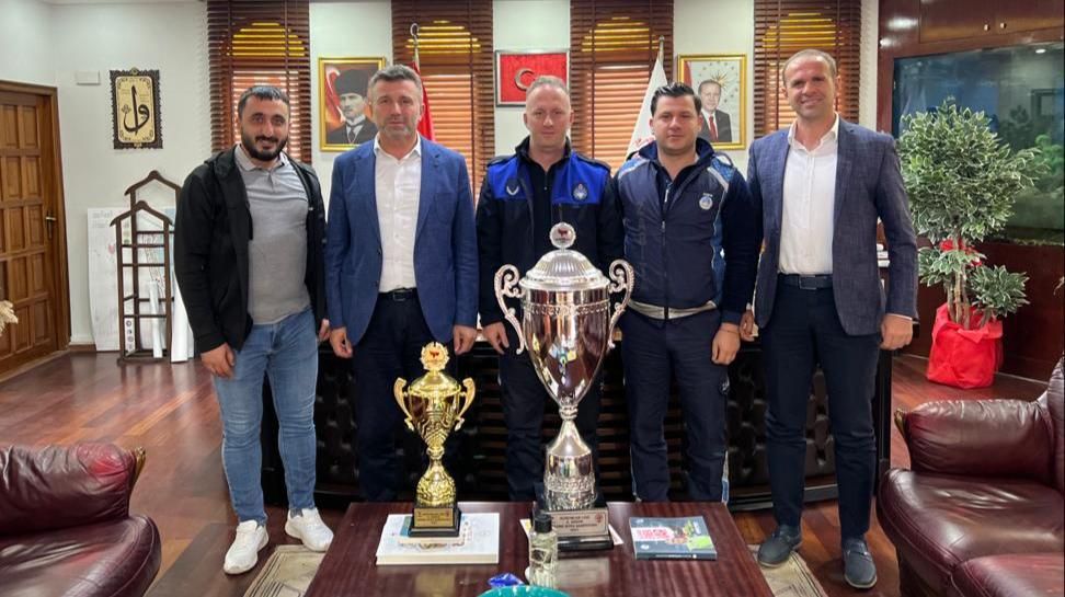 Oyunculardan Akın Arapoğlu, Engin Cebeci ve Şefik Belat takım adına kupayı Sapanca Belediye Başkanı Özcan Özen'e hediye etti.