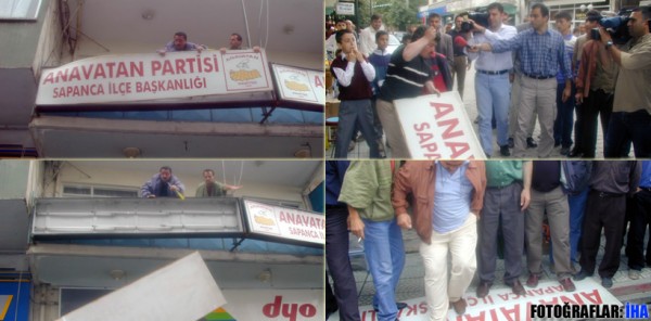 2001 yılında Sadettin Tantan’ın istifasının ardından Sapanca ilçe örgütü binasının tabelası işte böyle indirildi.
