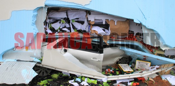 Sakarya'nın Sapanca ilçesinde sebze yüklü tırın altında kalarak hurda haline gelen otomobilin sürücüsü ,tır şoförü ve yanındaki yedek sürücü yaralandı.
