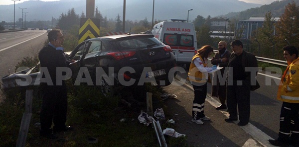 Alınan bilgiye göre, TEM Otoyolu'nda Seyit Mehmet Buğa (63) idaresindeki 42 EEM 79 plakalı otomobil, Sapanca gişeleri mevkisinde sürücüsünün direksiyon hakimiyetini kaybetmesi sonucu bariyerlere çarptı.