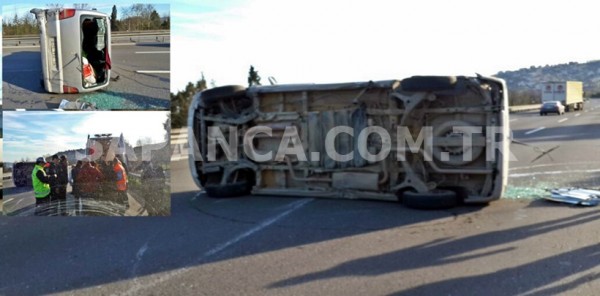 TEM OTOYOLU SAPANCA GEÇİŞİNDE MİNİBÜS TAKLA ATTI: 3 YARALI