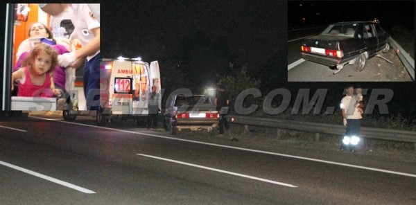 Edinilen bilgiye göre, Ankara istikametinden İstanbul istikametine giden Aytekin Koçbaş (29) idaresindeki 34 ZP 124 plakalı otomobil TEM Otoyolu Sapanca mevkinde sürücünün direksiyon hakimiyetini kaybetmesi sonucu bariyerlere çarptı. Kazada araçta yolcu olarak bulunan Yeliz Koçbaş (35) ve kızı Elif Koçbaş (3) yaralandı. Yaralılara ilk müdahaleyi kaza yerine gelen sağlık ekipleri yaptı.Yaralanan anne ve kızı ambulans ile Sakarya Eğitim ve Araştırma Hastanesine kaldırılarak tedavi altına alındı. Polis kaza ile ilgili inceleme başlattı.
