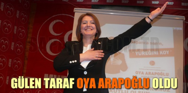 TEMAYÜL YOKLAMASINDA GÜLEN TARAF OYA ARAPOĞLU OLDU: MHP sapanca İlçe Teşkilatında yapılan temayül yoklamasında gülen taraf Oya Arapoğlu oldu.