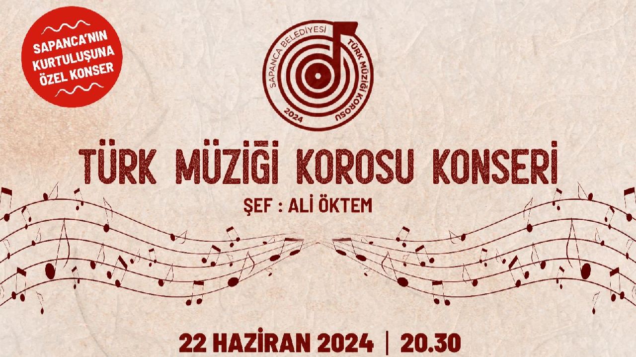 Sapanca'nın düşman işgalinden kurtuluşunun 103. yılı sebebiyle 22 Haziran Cumartesi günü Sapanca Belediyesi Türk Müziği Korosu tarafından konser düzenlenecek. Saat 20:30'da Sapanca Turizm Fakültesi Solunda gerçekleşecek konserde 23 korist, Şef Ali Öktem yönetiminde 24 eser seslendirecek. Sapanca Belediyesi'nden yapılan açıklamada ücretsiz olarak gerçekleşecek olan konsere tüm vatandaşlar davet edildi.