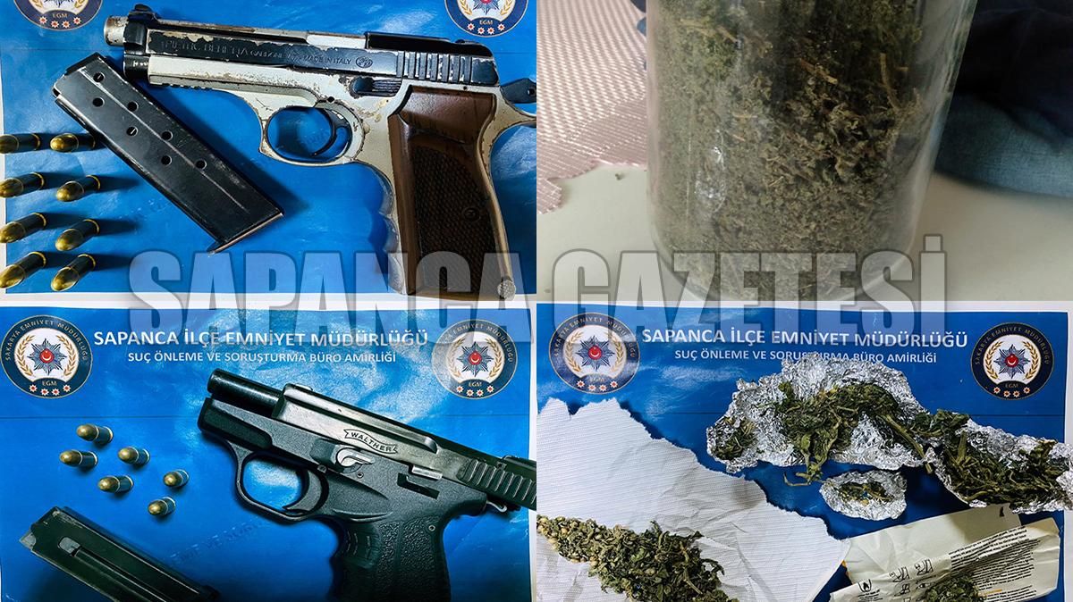Sapanca ilçesinde polis ekipleri tarafından yapılan operasyonlarda uyuşturucu madde ve ruhsatsız silah ele geçirildi.