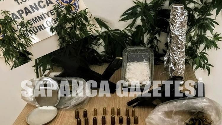 Sapanca İlçe Emniyet Müdürlüğü tarafından bir evde yapılan aramada uyuşturucu madde ve silah ele geçirildi.