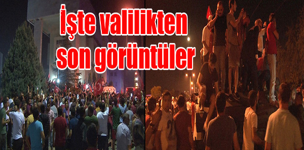 Ellerinde bayraklarla on binlerce vatandaş ve polislerin valilik önünde bekleyişi sürüyor.