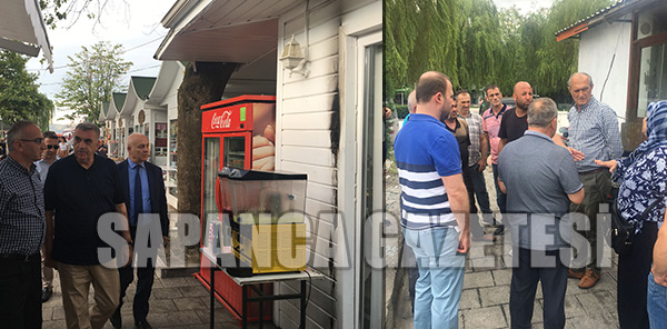 Cumartesi gecesi Sapanca sahil yolundaki iş yerlerinde çıkan yangında, 10 kafeteryanın tamamen kül olmasının ardından yetkililer olay yerinde incelemeler yaptı. Esnafa geçmiş olsun dileklerinde bulundu.