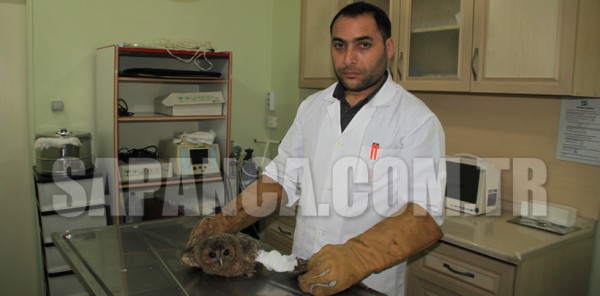Sapanca ilçesinde bir hayvansever tarafından yaralı halde bulunan ve götürüldüğü veterinerde kanadının kırk olduğu belirlenen baykuşa platin takıldı.