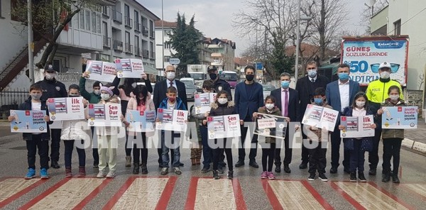 Öğrenciler ellerinde taşıdıkları dövizler ile sürücülerin dikkatini çekmeye çalıştı. Öğrencilerin taşıdığı dövizlerde, 'Öncelik yayanın', 'Sen dur hayat durmasın' ve 'Yaya güvenliğinin nöbetçisiyiz' gibi mesajlar yer aldı.
